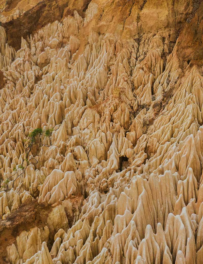 Le Tsingy Rouge se caractérise par ses hautes pointes de calcaire érodé qui créent un paysage époustouflant de formations rocheuses rouges et dentelées. La couleur rouge vibrante est causée par la présence d’oxyde de fer dans les roches. Ces formations ont été créées au fil de millions d’années par l’érosion hydrique et l’altération chimique.